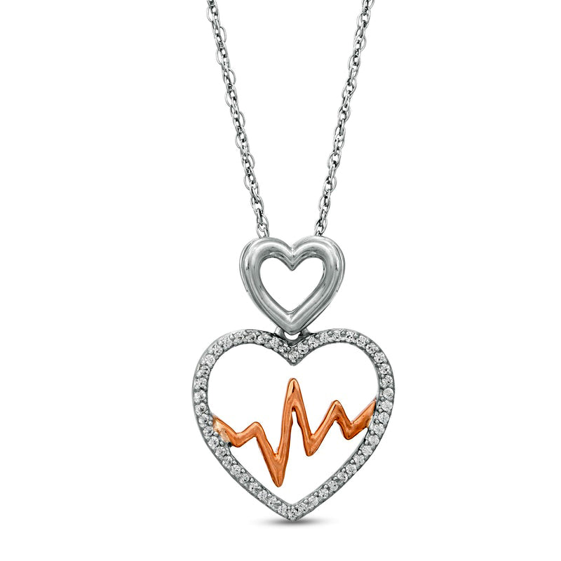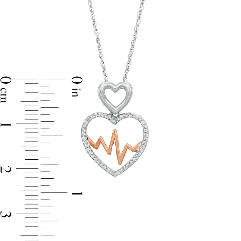 0.17 CT. T.W. Natural Diamond Double Heart and Heartbeat Pendant in Sterling Silver and 10K Rose Gold