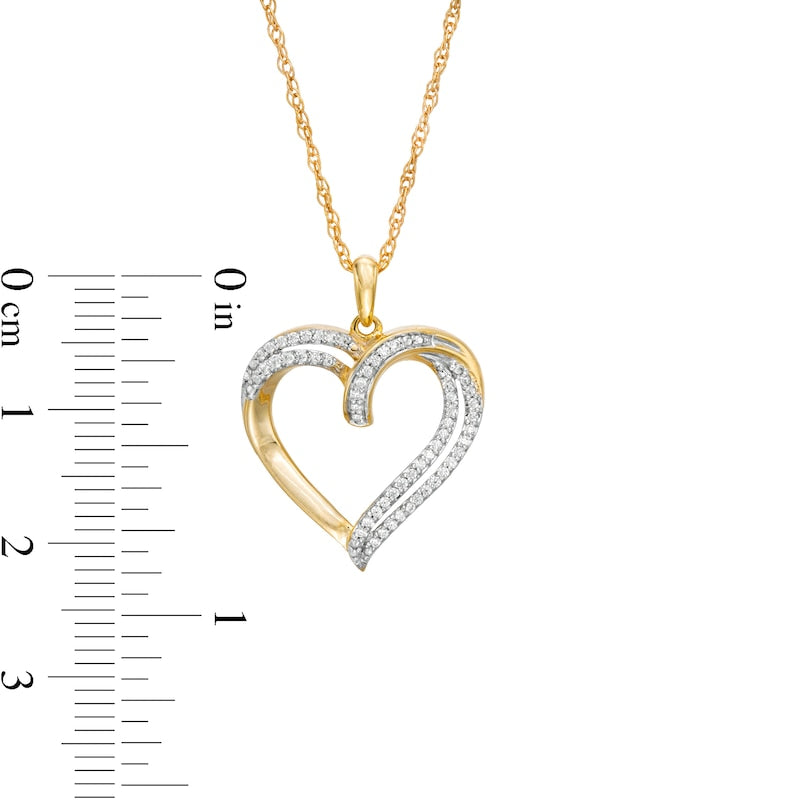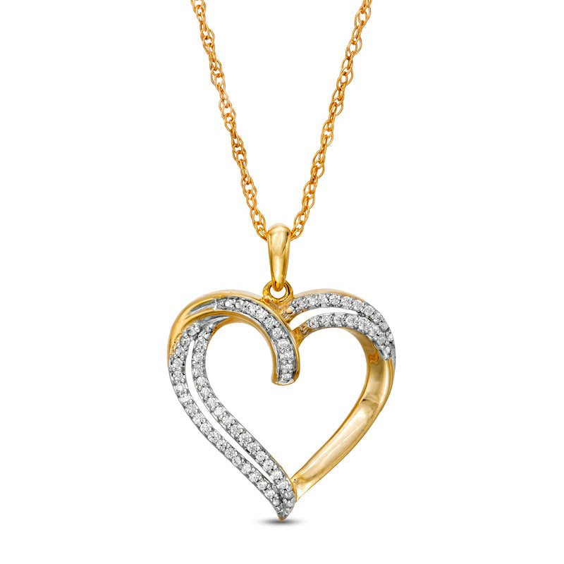 0.17 CT. T.W. Natural Diamond Double Row Heart Pendant in 10K Yellow Gold