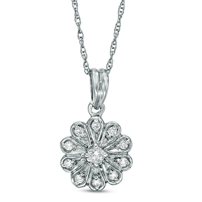 0.17 CT. T.W. Natural Diamond Flower Frame Pendant in 10K White Gold