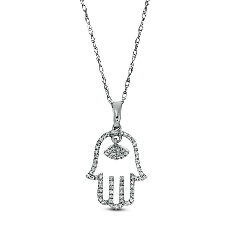 0.17 CT. T.W. Natural Diamond Hamsa Pendant in 10K White Gold