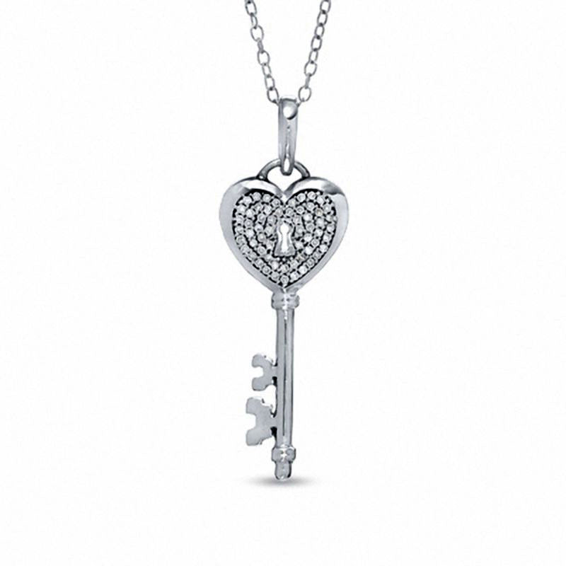 0.17 CT.T.W. Natural Diamond Heart Key Pendant in Sterling Silver