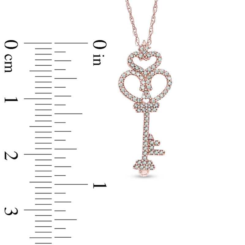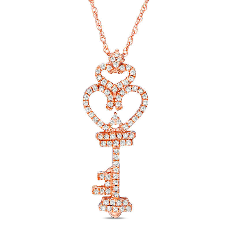 0.17 CT. T.W. Natural Diamond Heart-Top Key Pendant in 10K Rose Gold