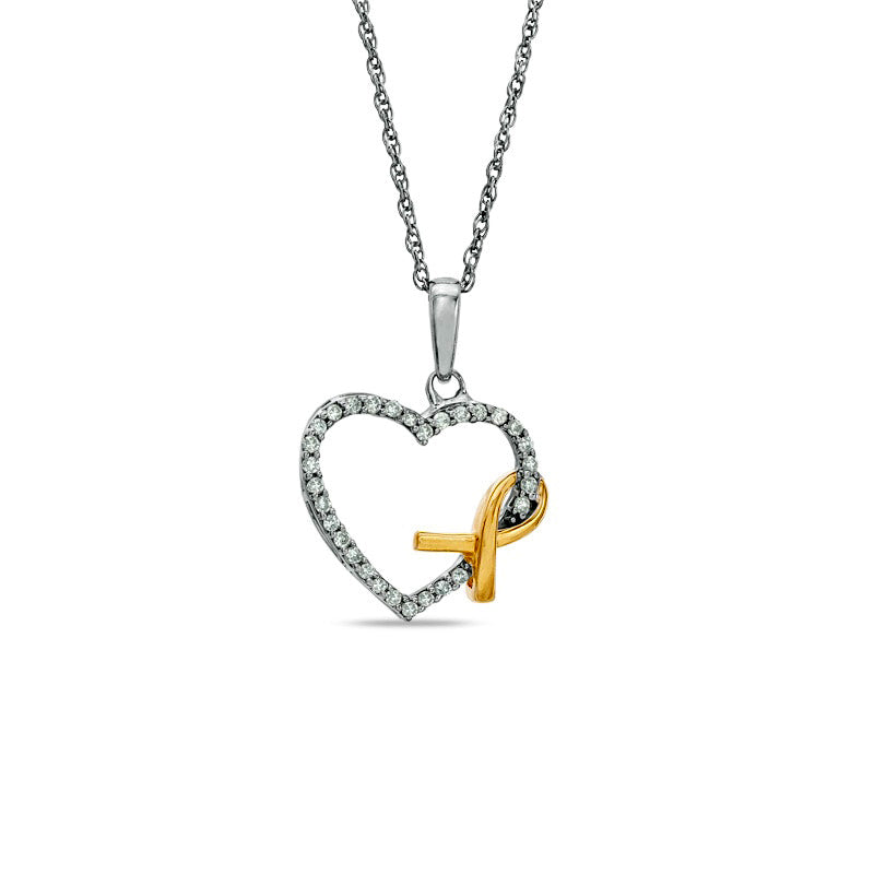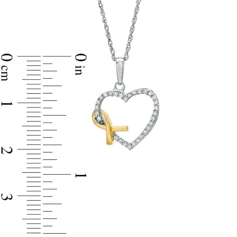 0.17 CT. T.W. Natural Diamond Heart with Awareness Ribbon Pendant in Sterling Silver and 14K Gold Plate