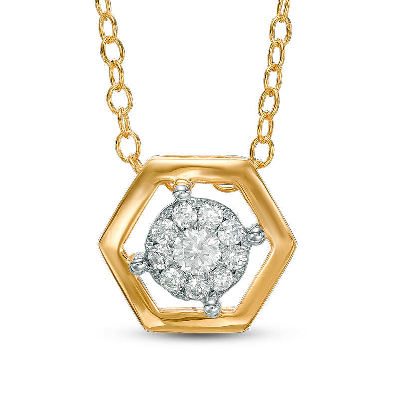 0.17 CT. T.W. Natural Diamond Hexagonal Frame Pendant in 10K Yellow Gold