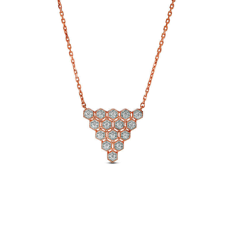 0.17 CT. T.W. Natural Diamond Honeycomb Triangle Antique Vintage Style Necklace in 10K Rose Gold