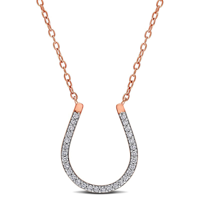 0.17 CT. T.W. Natural Diamond Horseshoe Necklace in Sterling Silver with Rose Rhodium Plate
