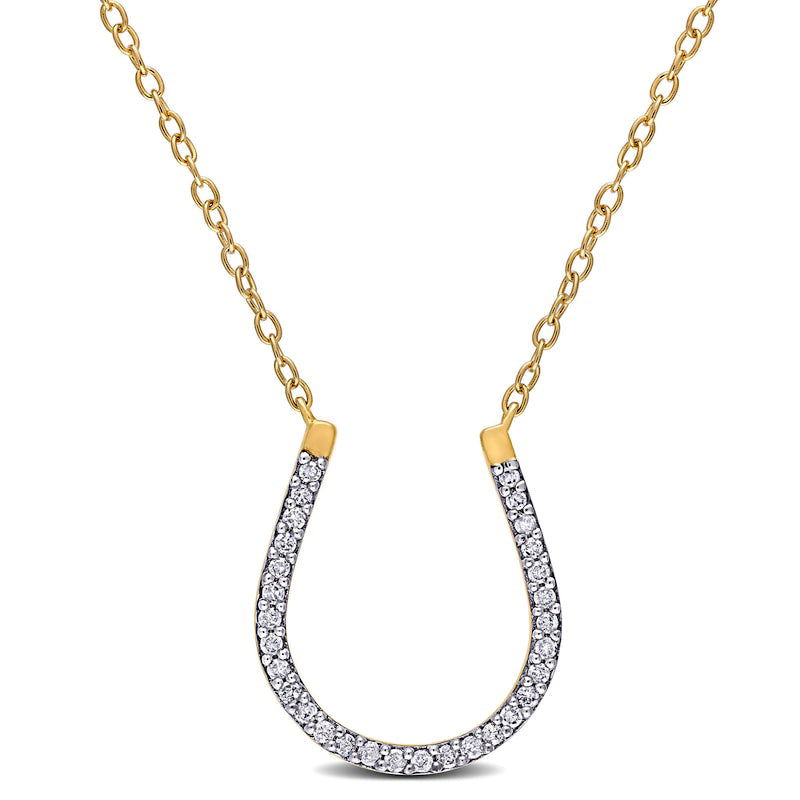 0.17 CT. T.W. Natural Diamond Horseshoe Necklace in Sterling Silver with Yellow Rhodium Plate