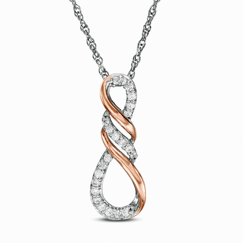 0.17 CT. T.W. Natural Diamond Infinity Flame Pendant in Sterling Silver and 10K Rose Gold