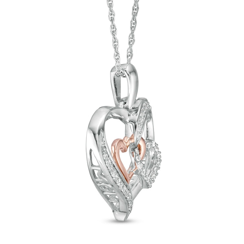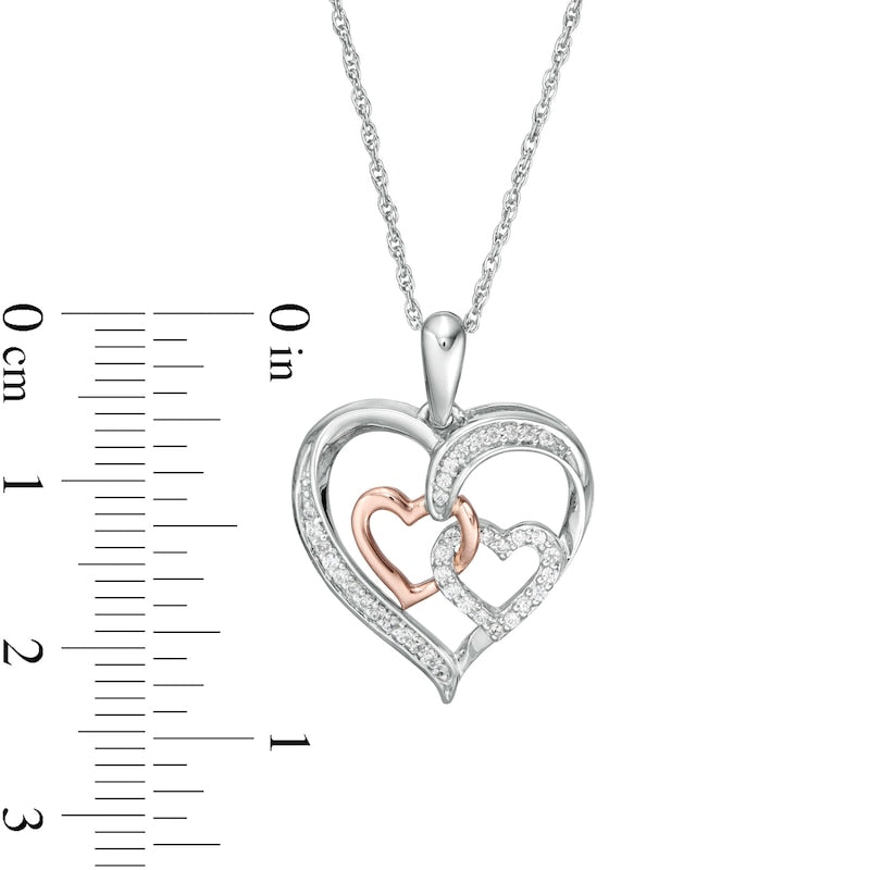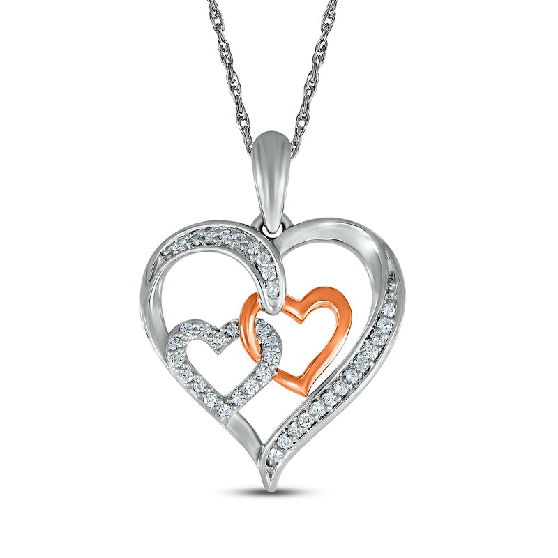 0.17 CT. T.W. Natural Diamond Interlocking Heart Trio Pendant in Sterling Silver and 10K Rose Gold