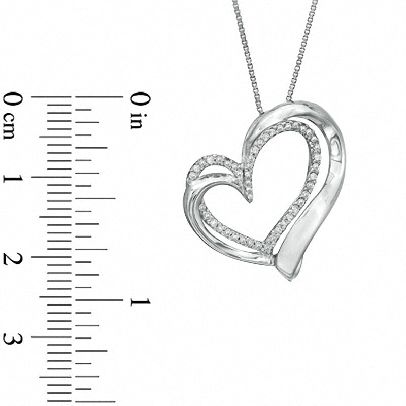 0.17 CT. T.W. Natural Diamond Looped Tilted Heart Pendant in Sterling Silver