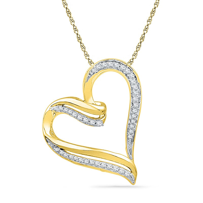0.17 CT. T.W. Natural Diamond Ribbon Tilted Heart Pendant in 10K Yellow Gold