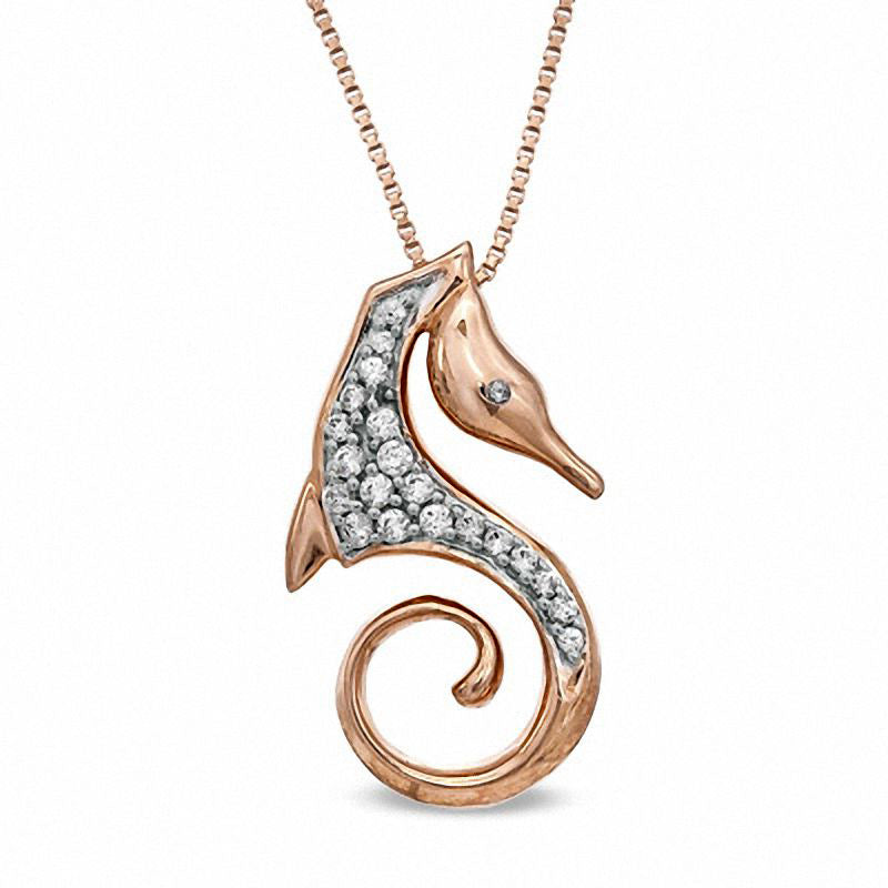 0.17 CT. T.W. Natural Diamond Seahorse Pendant in Sterling Silver and 14K Rose Gold Plate
