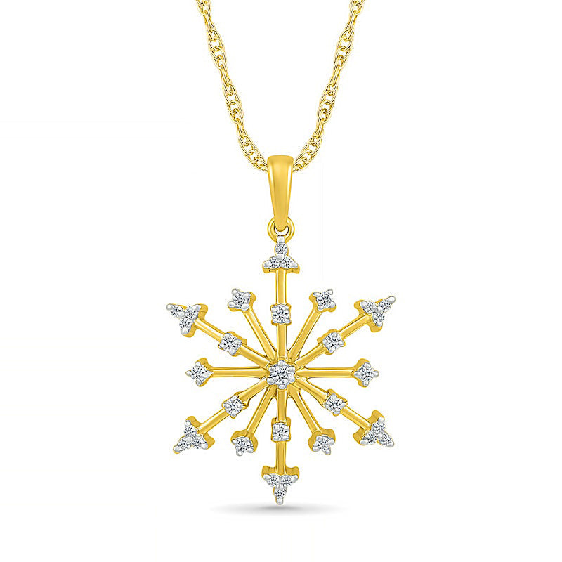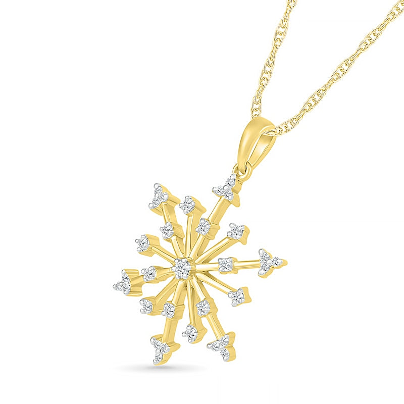 0.17 CT. T.W. Natural Diamond Snowflake Pendant in Sterling Silver with 14K Gold Plate
