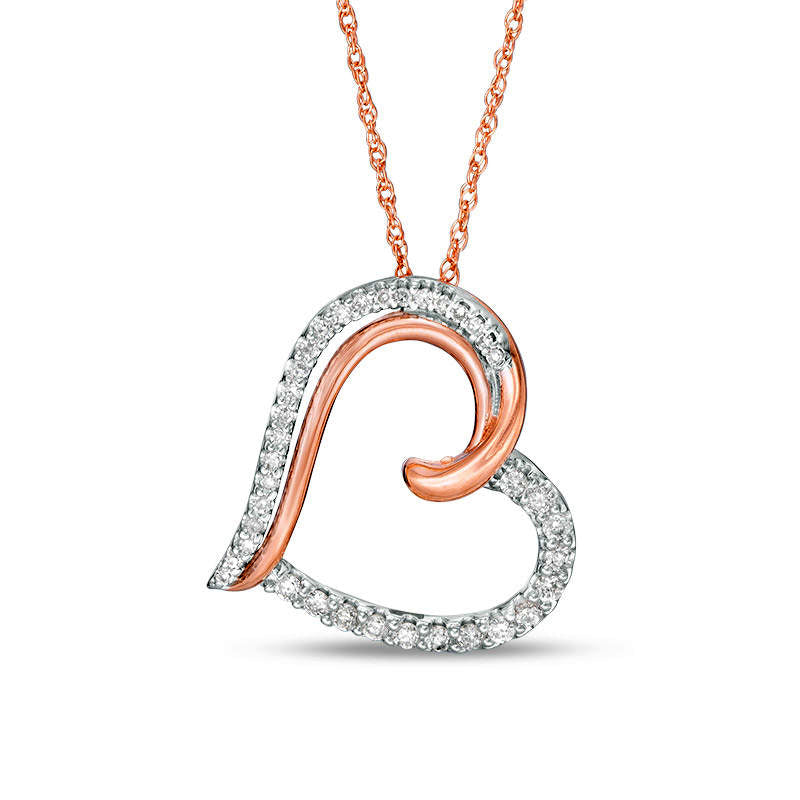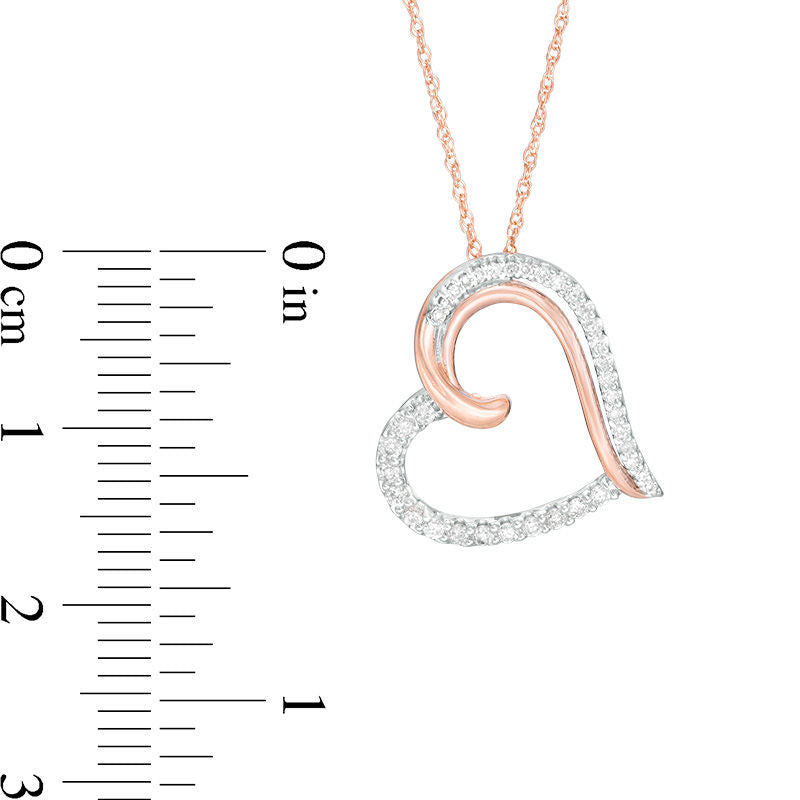0.17 CT. T.W. Natural Diamond Tilted Heart Pendant in 10K Rose Gold