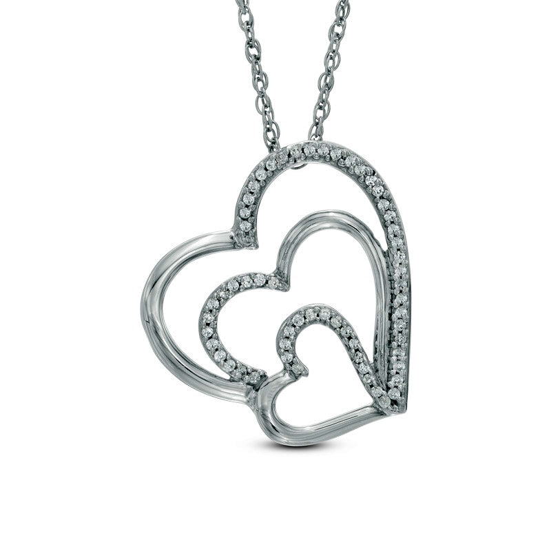 0.17 CT. T.W. Natural Diamond Tilted Layered Triple Heart Pendant in Sterling Silver