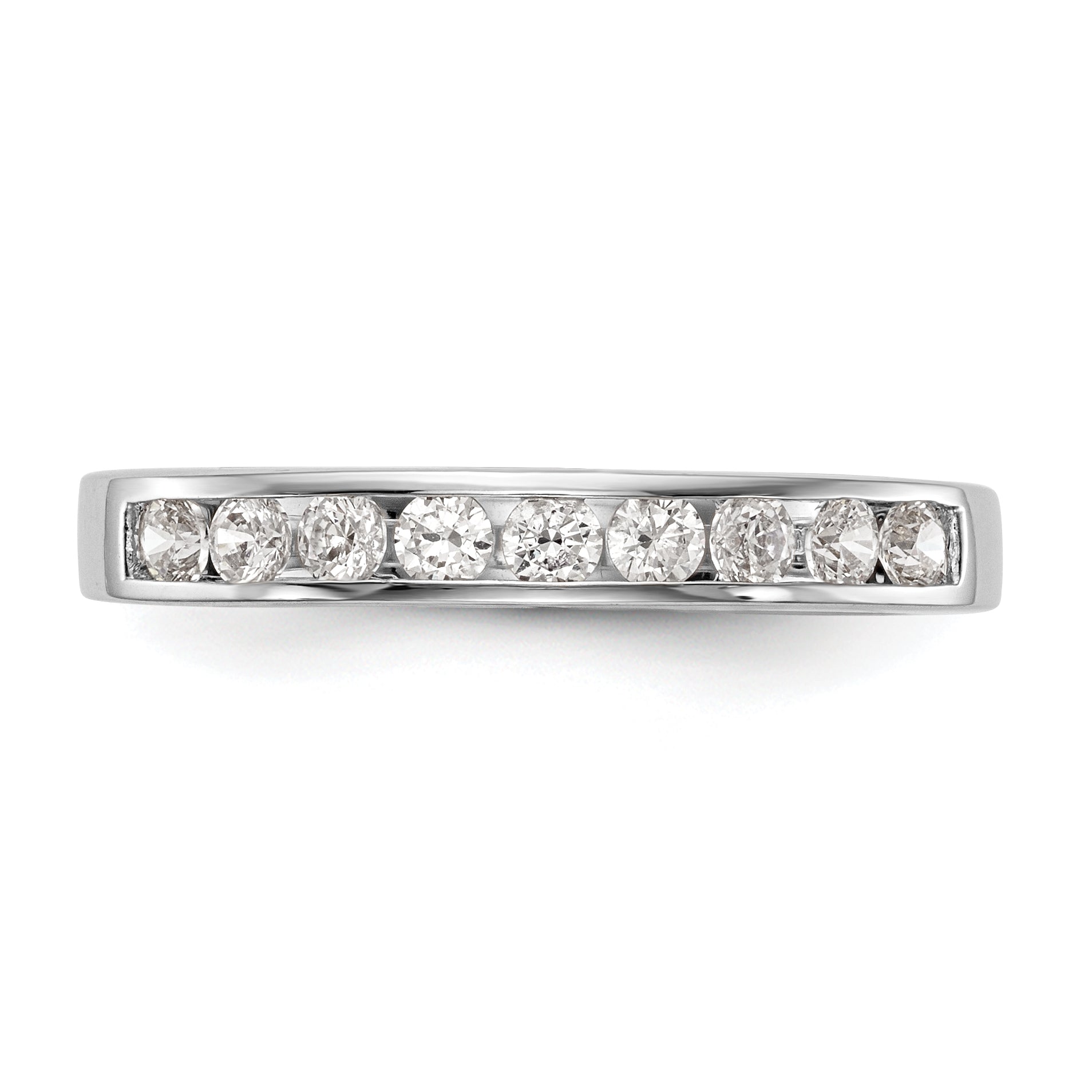 This wedding band ring has a tapered band width of 3.32 to 3.74 mm, and 10 stunning CZs with a total weight of 0.02ct. The ring is complete with all stones and has a closed-back feature for added durability. It's sizeable and available in sizes 6 to 8 with a sizing adjustment increment of 0.25. The ring has a polished finish, a rounded edge type, it is casted in gold and is white in color. Upgrade your accessories wardrobe with this Solid Real 14K White Gold Wedding Band Ring.