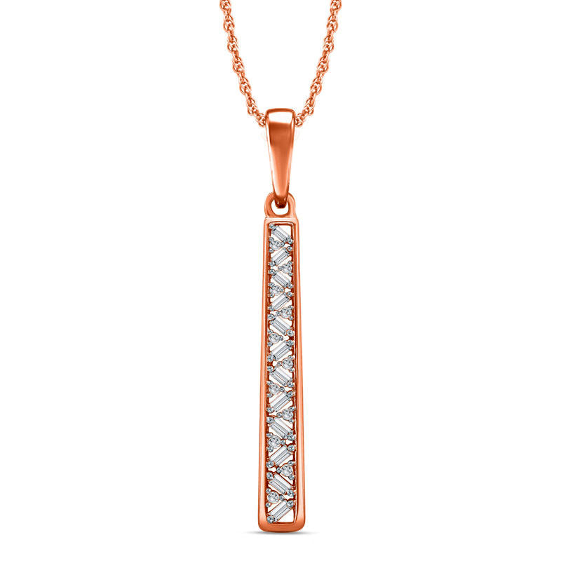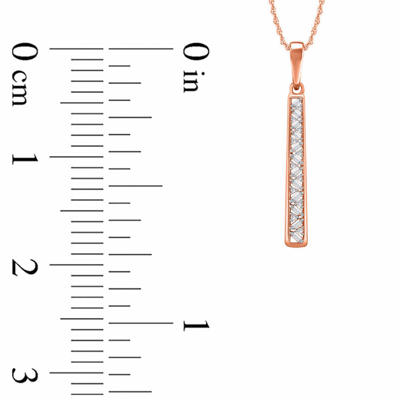 0.2 CT. T.W. Baguette and Round Natural Diamond Linear Pendant in 10K Rose Gold