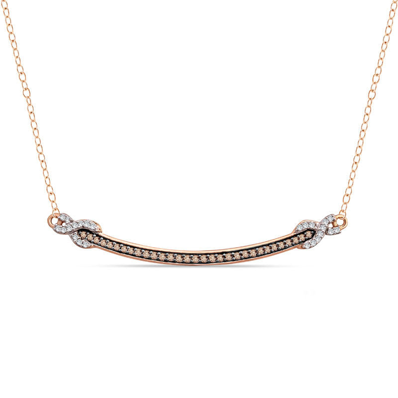 0.2 CT. T.W. Champagne and White Natural Diamond Curved Bar Necklace in 10K Rose Gold