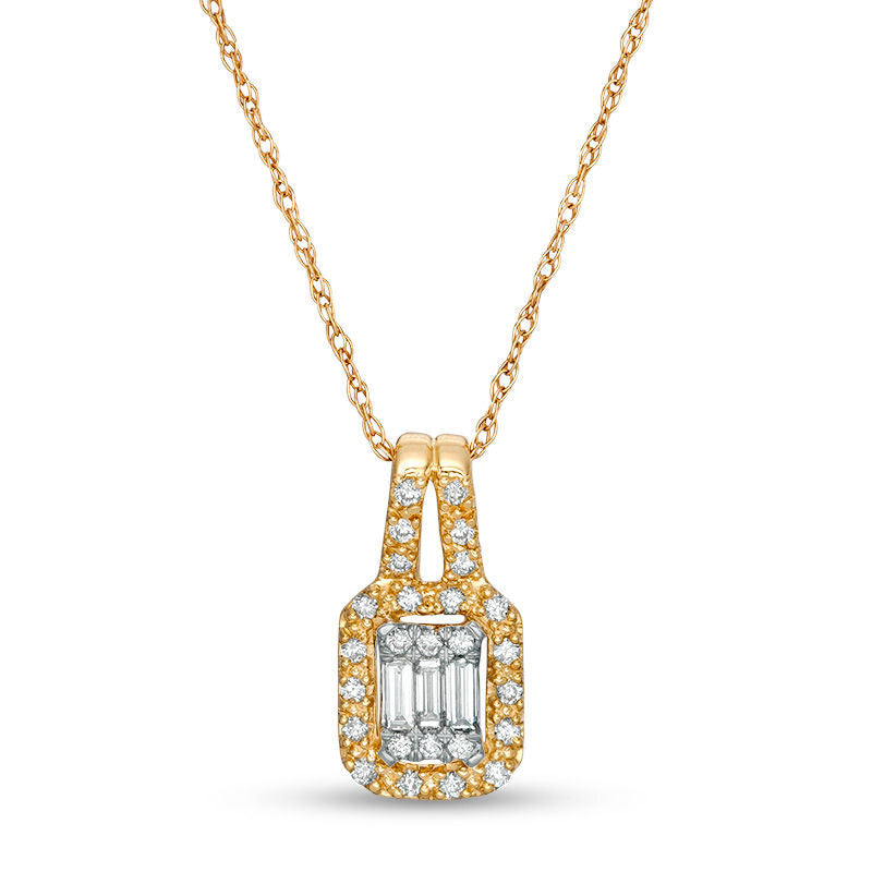 0.2 CT. T.W. Composite Natural Diamond Rectangular Frame Pendant in 10K Yellow Gold