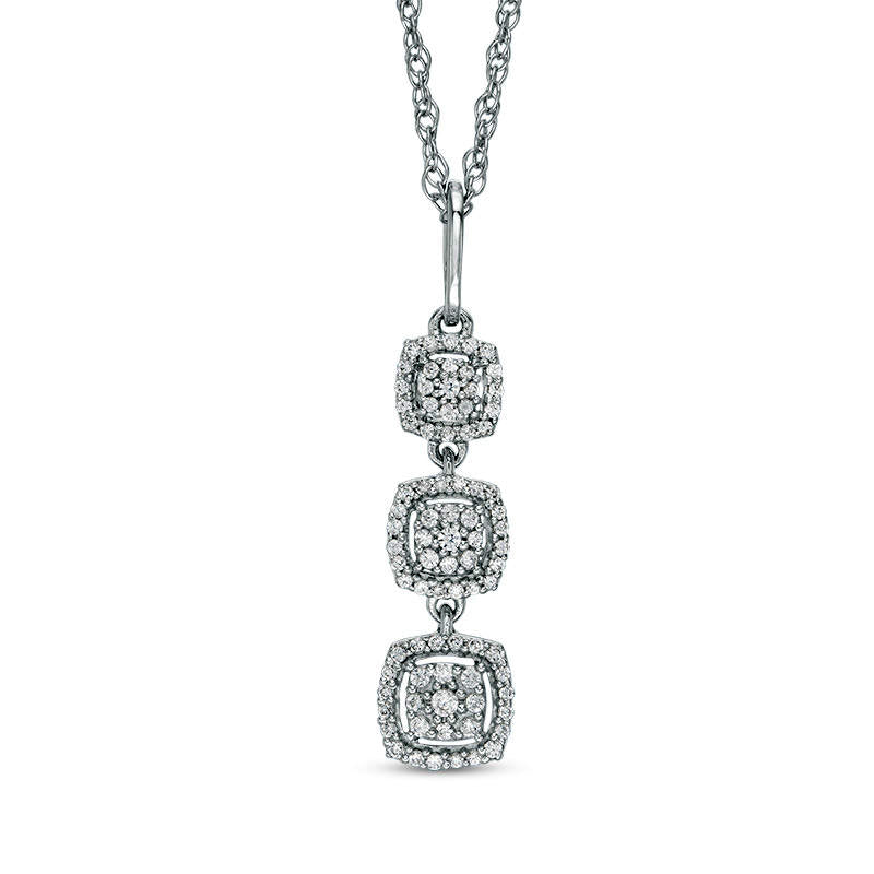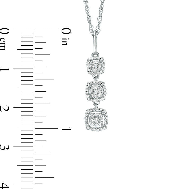 0.2 CT. T.W. Composite Natural Diamond Vertical Three Stone Square Frame Pendant in 10K White Gold