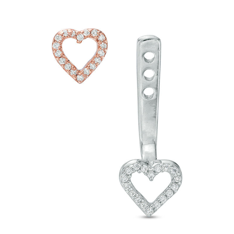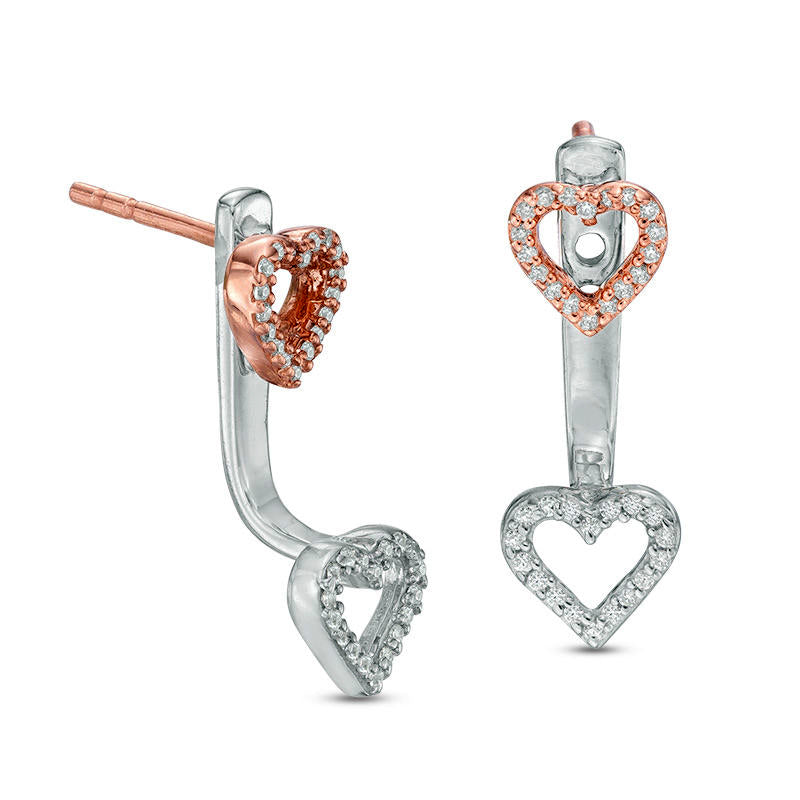0.2 CT. T.W. Diamond Heart Front/Back Earrings in 10K Two-Tone Gold