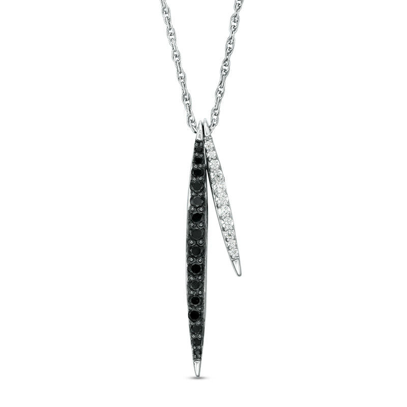 0.2 CT. T.W. Enhanced Black and White Natural Diamond Vertical Bars Pendant in Sterling Silver