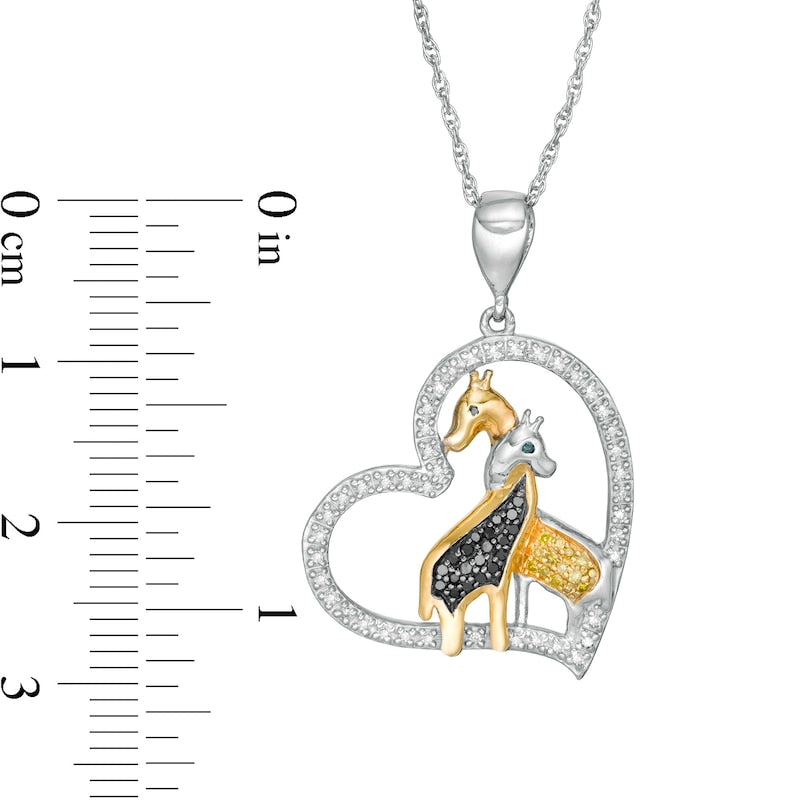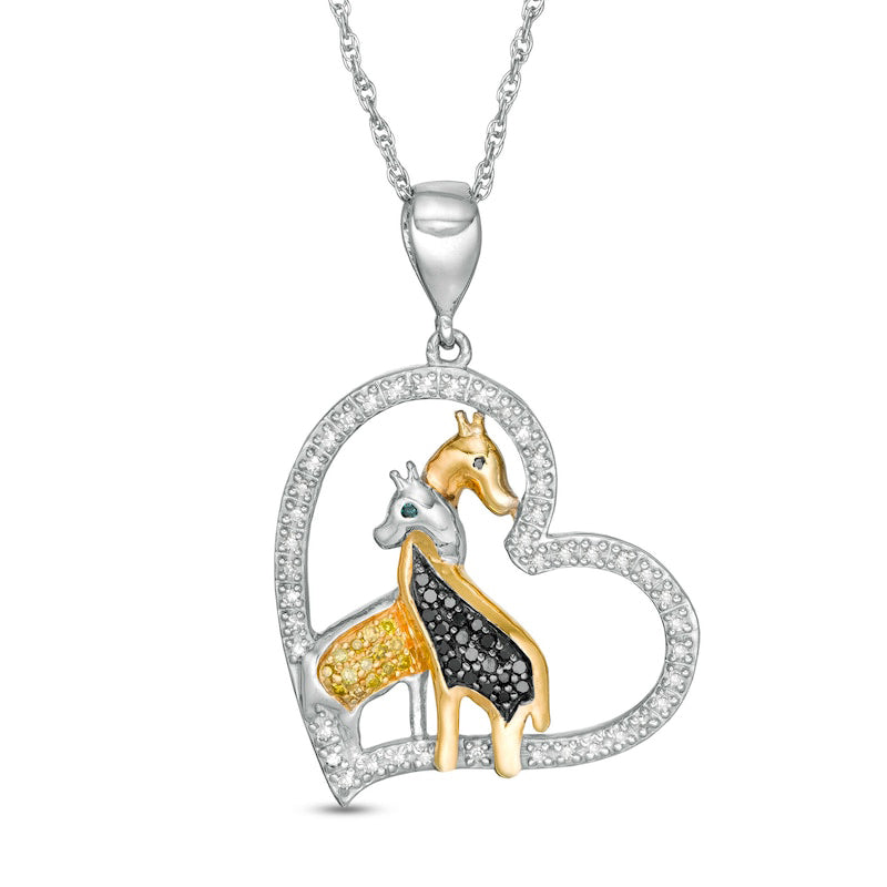 0.2 CT. T.W. Enhanced Multi-Color and White Natural Diamond Giraffes Heart Pendant in Sterling Silver and 14K Gold Plate
