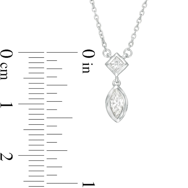 0.2 CT. T.W. Marquise and Princess-Cut Natural Diamond Necklace in 10K White Gold