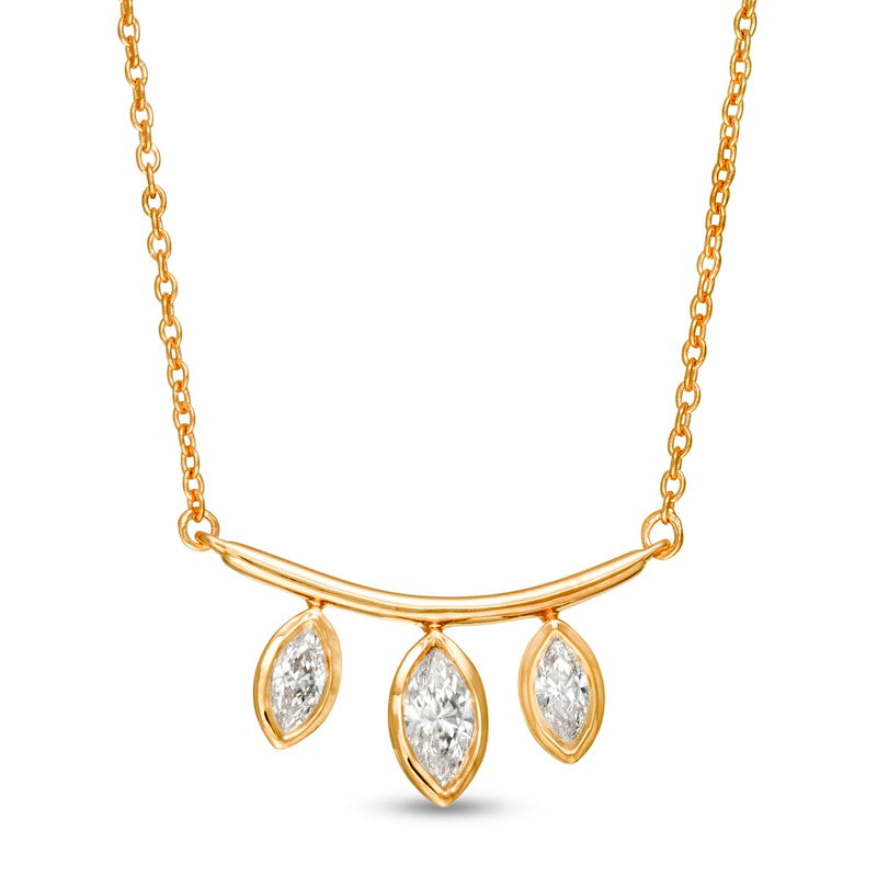 0.2 CT. T.W. Marquise Natural Diamond Three Stone Curved Bar Necklace in 10K Yellow Gold