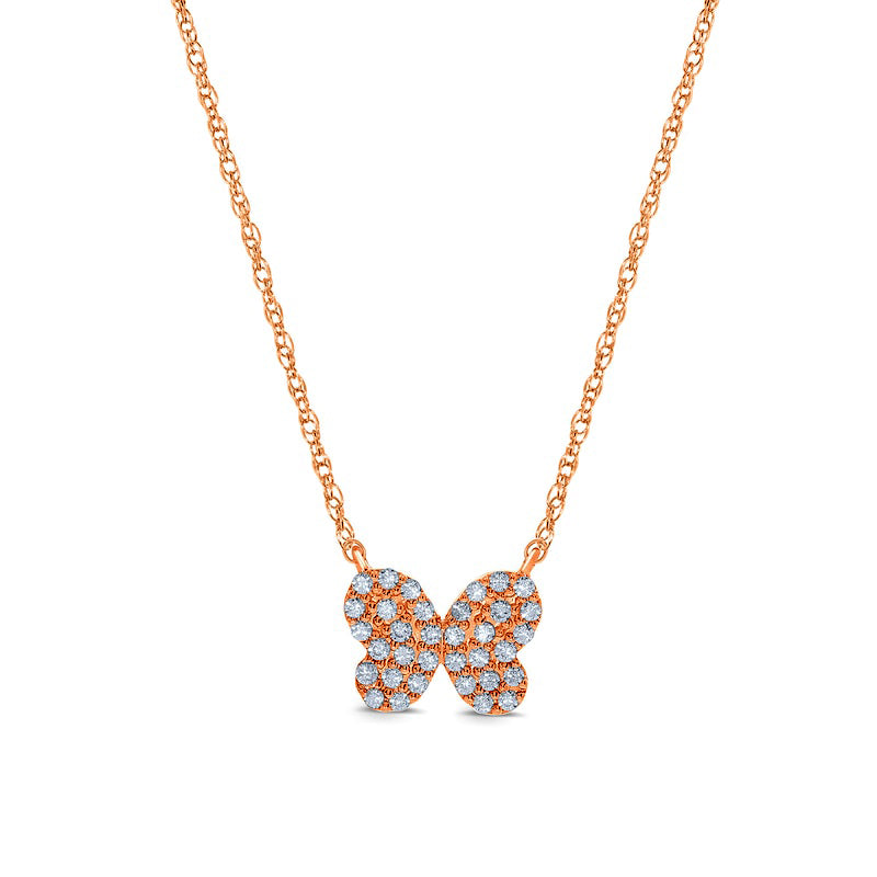 0.2 CT. T.W. Natural Diamond Butterfly Necklace in Sterling Silver with 14K Rose Gold Plate