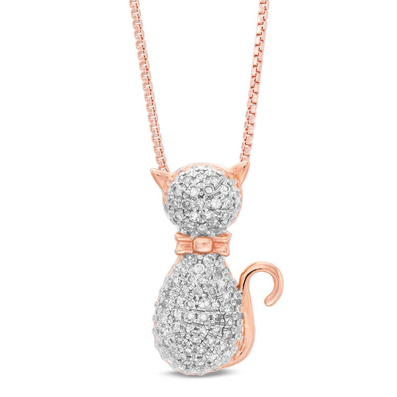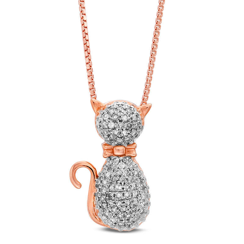 0.2 CT. T.W. Natural Diamond Cat Pendant in Sterling Silver with 18K Rose Gold Plate