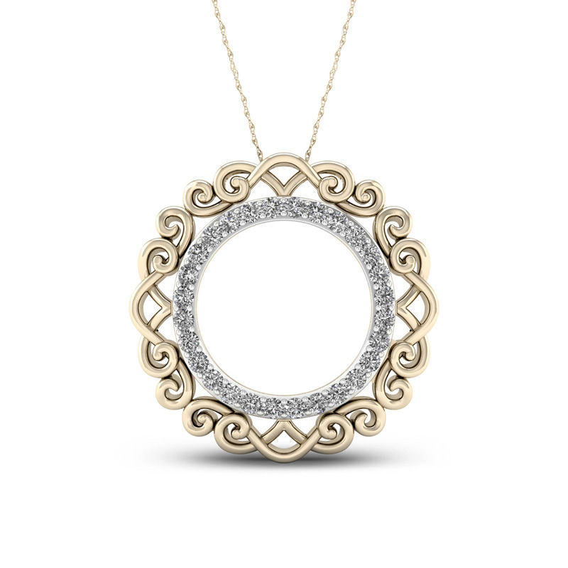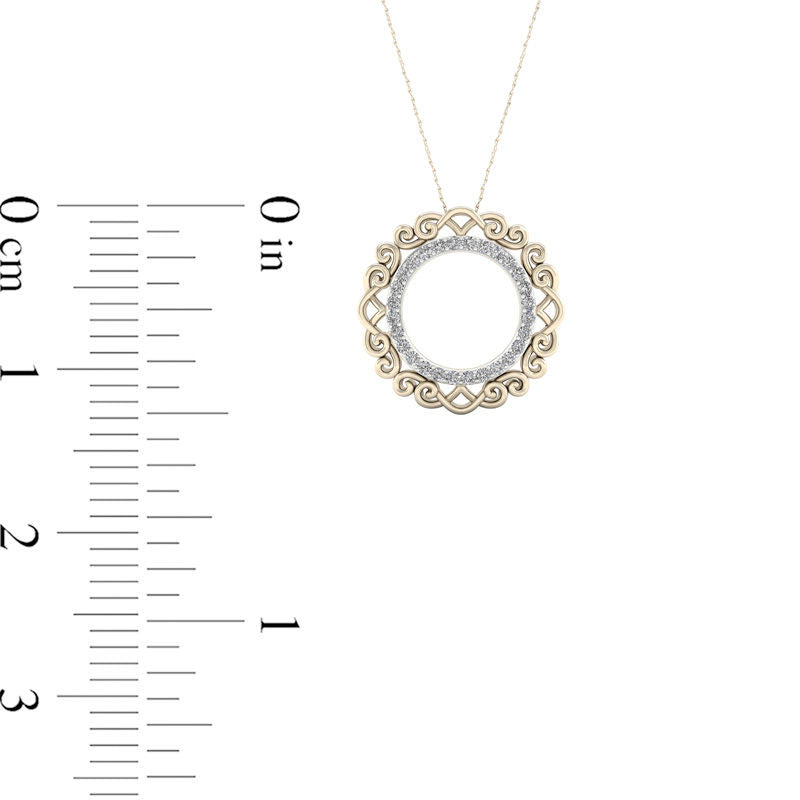0.2 CT. T.W. Natural Diamond Circle Filigree Pendant in 10K Yellow Gold
