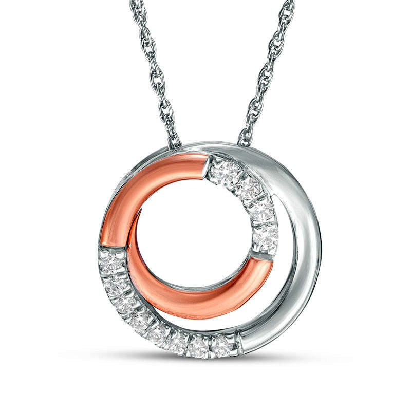 0.2 CT. T.W. Natural Diamond Circle Loop Pendant in Sterling Silver and 10K Rose Gold