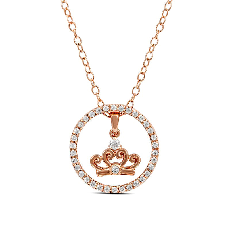 0.2 CT. T.W. Natural Diamond Circle with Crown Pendant in Sterling Silver with 14K Rose Gold Plate