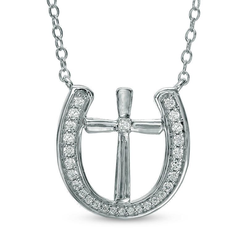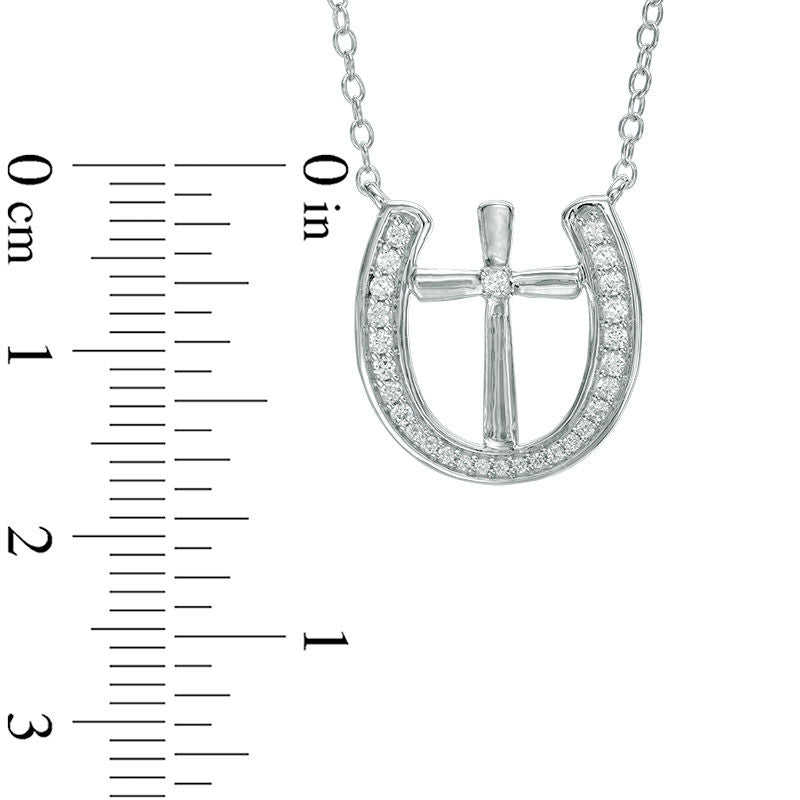 0.2 CT. T.W. Natural Diamond Cross in Horseshoe Necklace in Sterling Silver