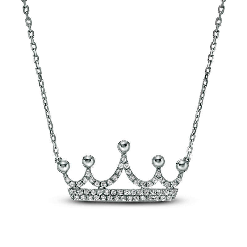 0.2 CT. T.W. Natural Diamond Crown Necklace in 10K White Gold