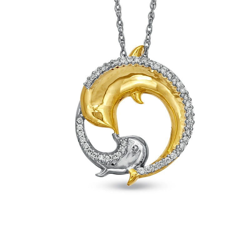 0.2 CT. T.W. Natural Diamond Dolphin Circle Pendant in Sterling Silver with 14K Gold Plate