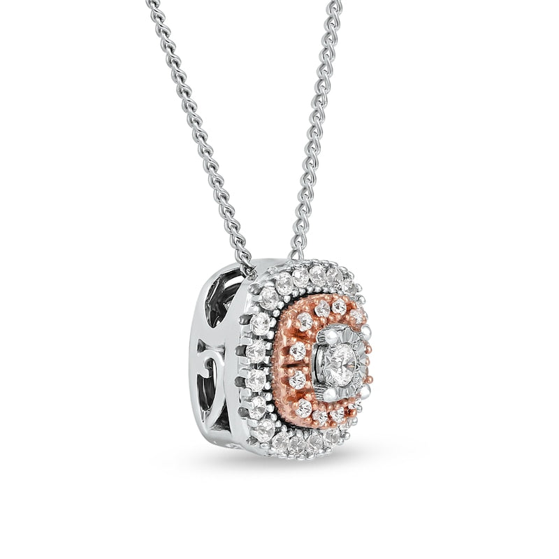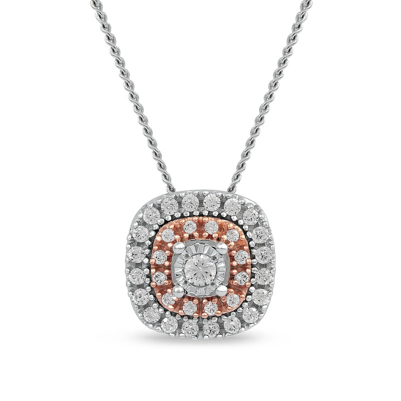 0.2 CT. T.W. Natural Diamond Double Cushion Frame Pendant in 10K Two-Tone Gold