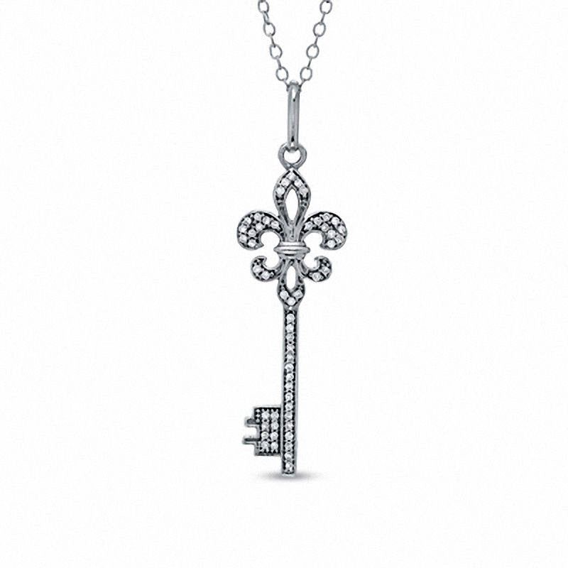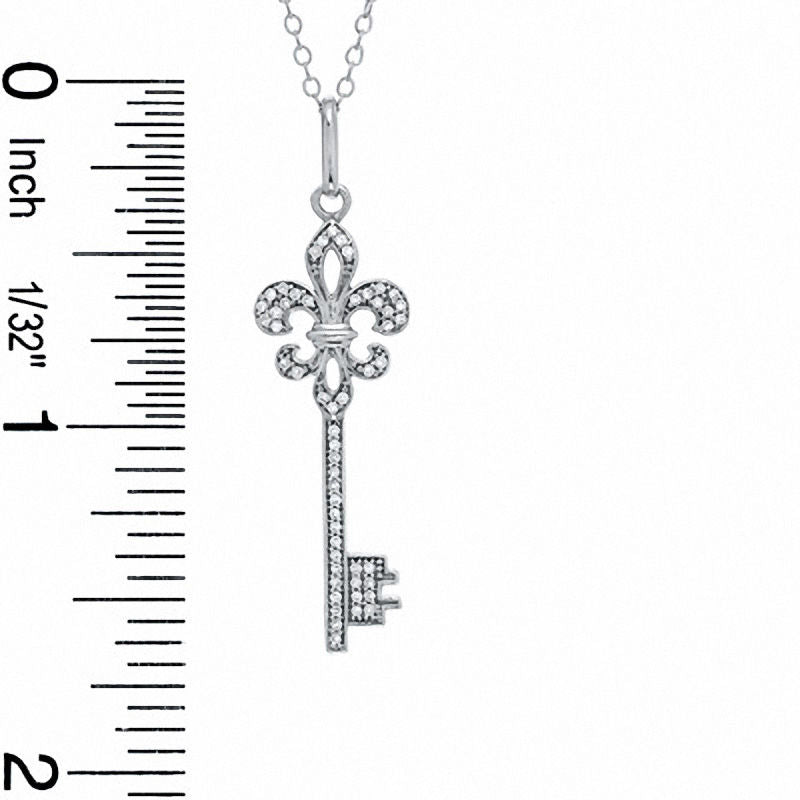 0.2 CT. T.W. Natural Diamond Fleur-de-Lis Key Pendant in Sterling Silver