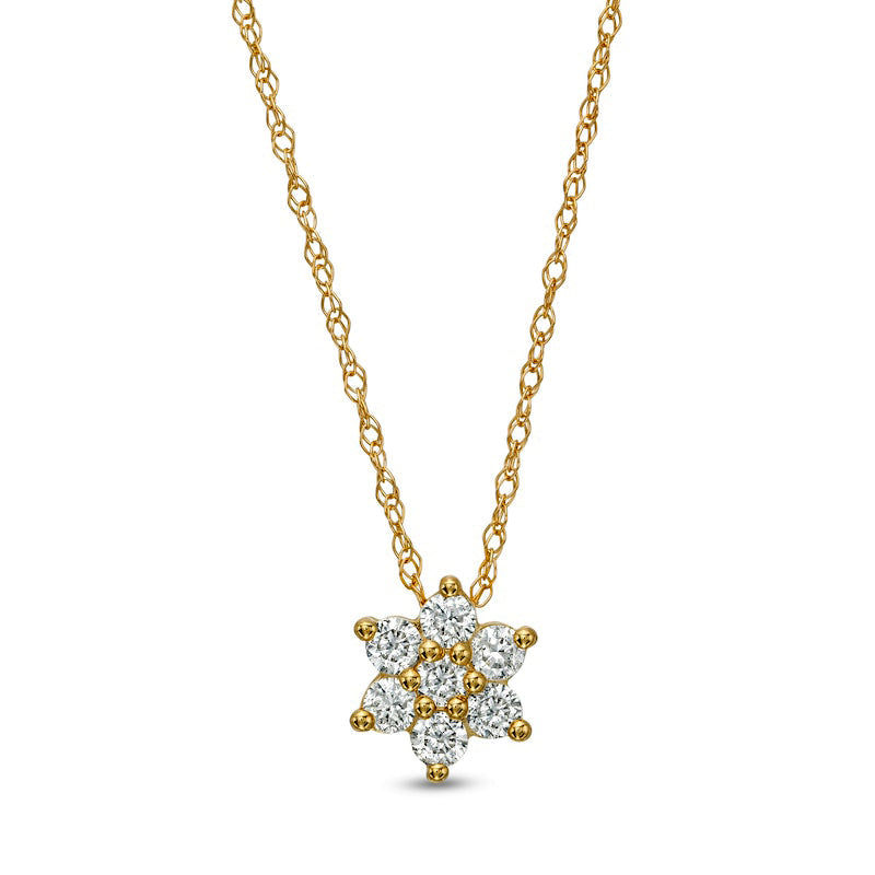 0.2 CT. T.W. Natural Diamond Flower Pendant in 10K Yellow Gold