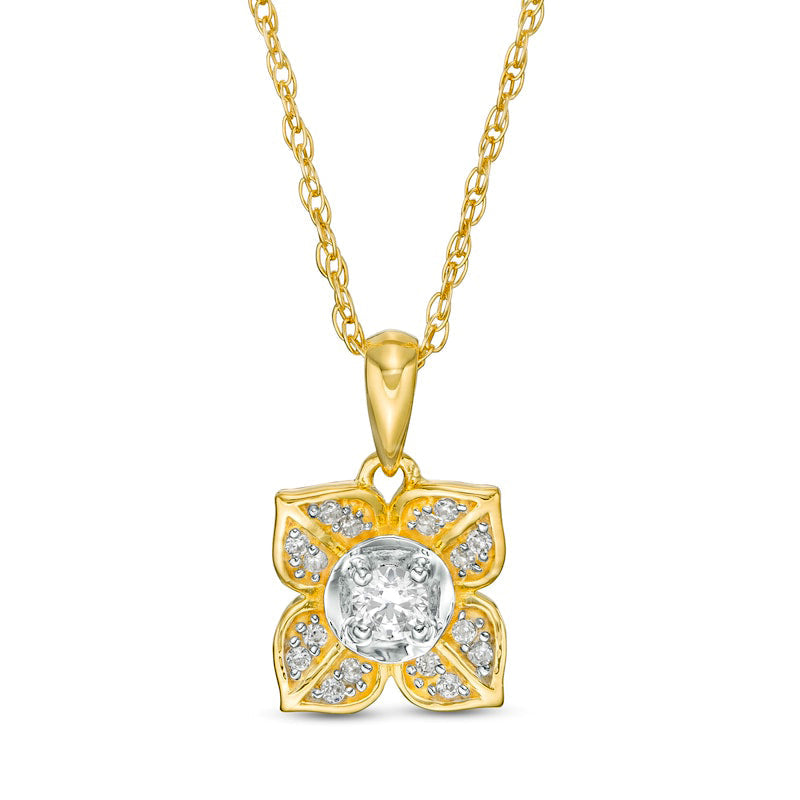 0.2 CT. T.W. Natural Diamond Flower Pendant in Sterling Silver with 10K Yellow Gold Plate