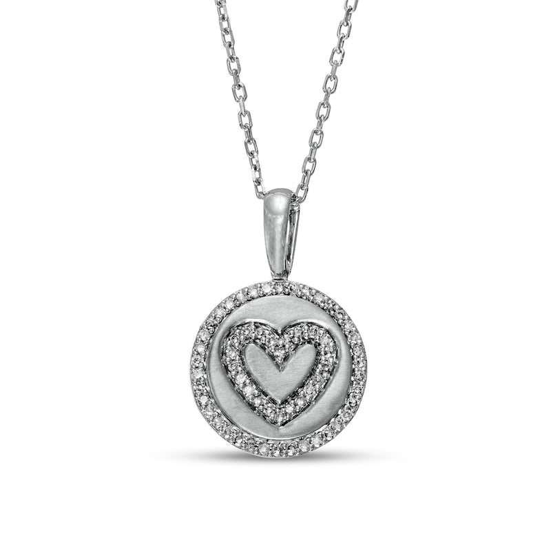 0.2 CT. T.W. Natural Diamond Frame Heart in Circle Pendant in Sterling Silver