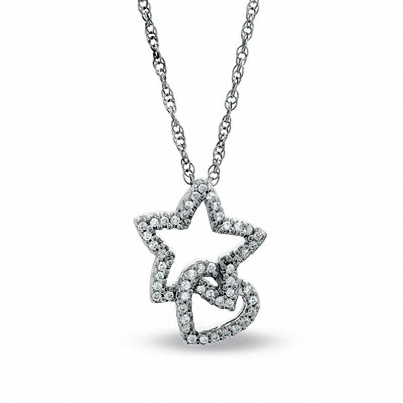 0.2 CT. T.W. Natural Diamond Heart and Star Pendant in Sterling Silver