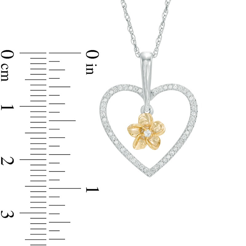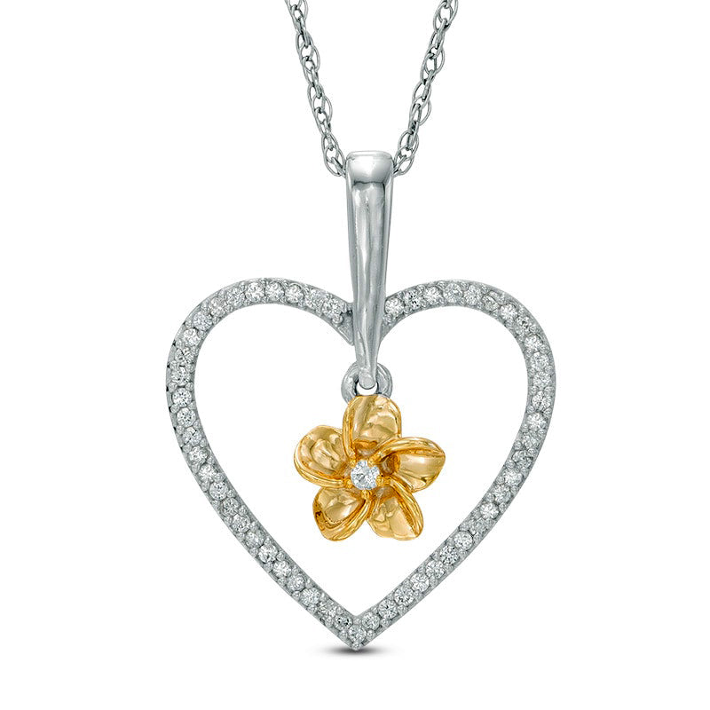 0.2 CT. T.W. Natural Diamond Heart Frame Flower Pendant in Sterling Silver and 10K Yellow Gold