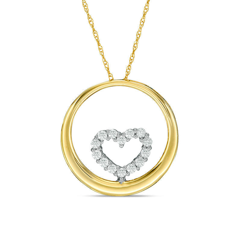 0.2 CT. T.W. Natural Diamond Heart in Circle Pendant in 10K Two-Tone Gold