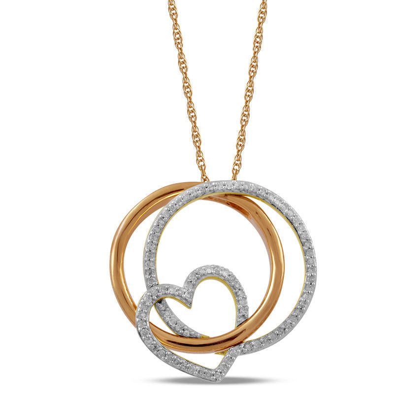 0.2 CT. T.W. Natural Diamond Interlocking Circles and Heart Pendant in 10K Two-Tone Gold