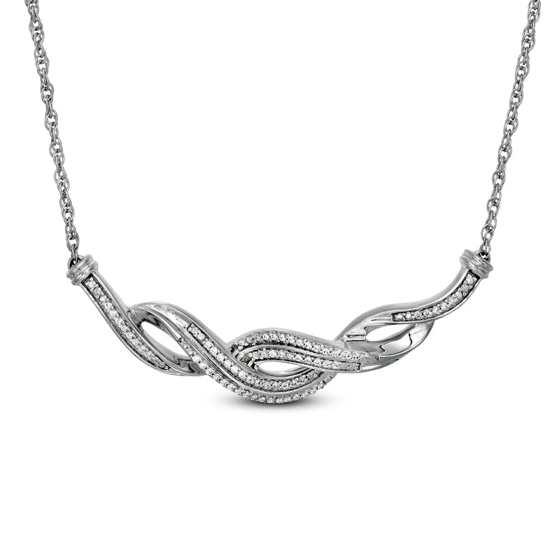 0.2 CT. T.W. Natural Diamond Layered Braid Necklace in Sterling Silver