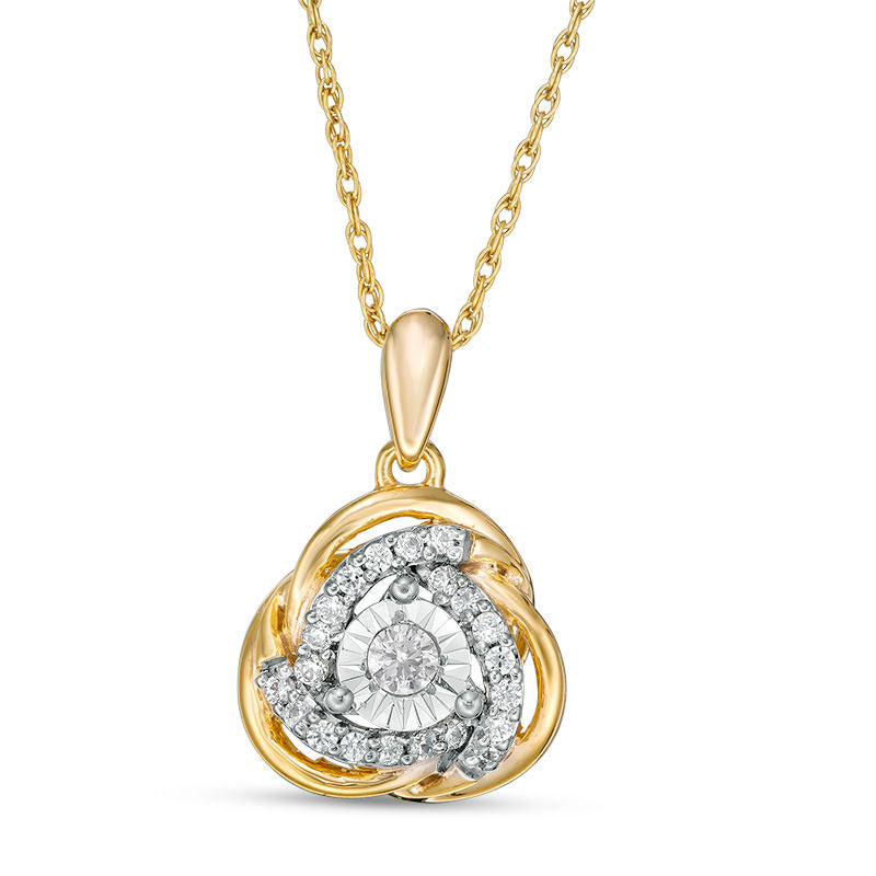 0.2 CT. T.W. Natural Diamond Love Knot Pendant in 10K Yellow Gold