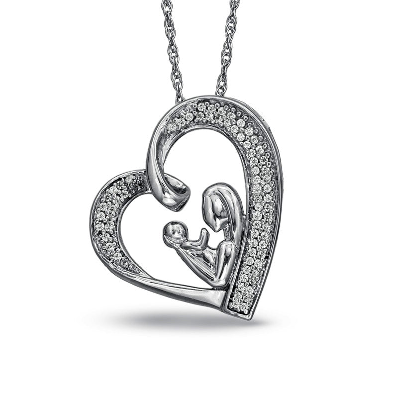 0.2 CT. T.W. Natural Diamond Motherly Love Tilted Heart Pendant in Sterling Silver