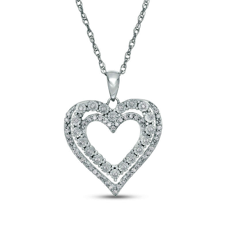 0.2 CT. T.W. Natural Diamond Multi-Row Heart Pendant in Sterling Silver